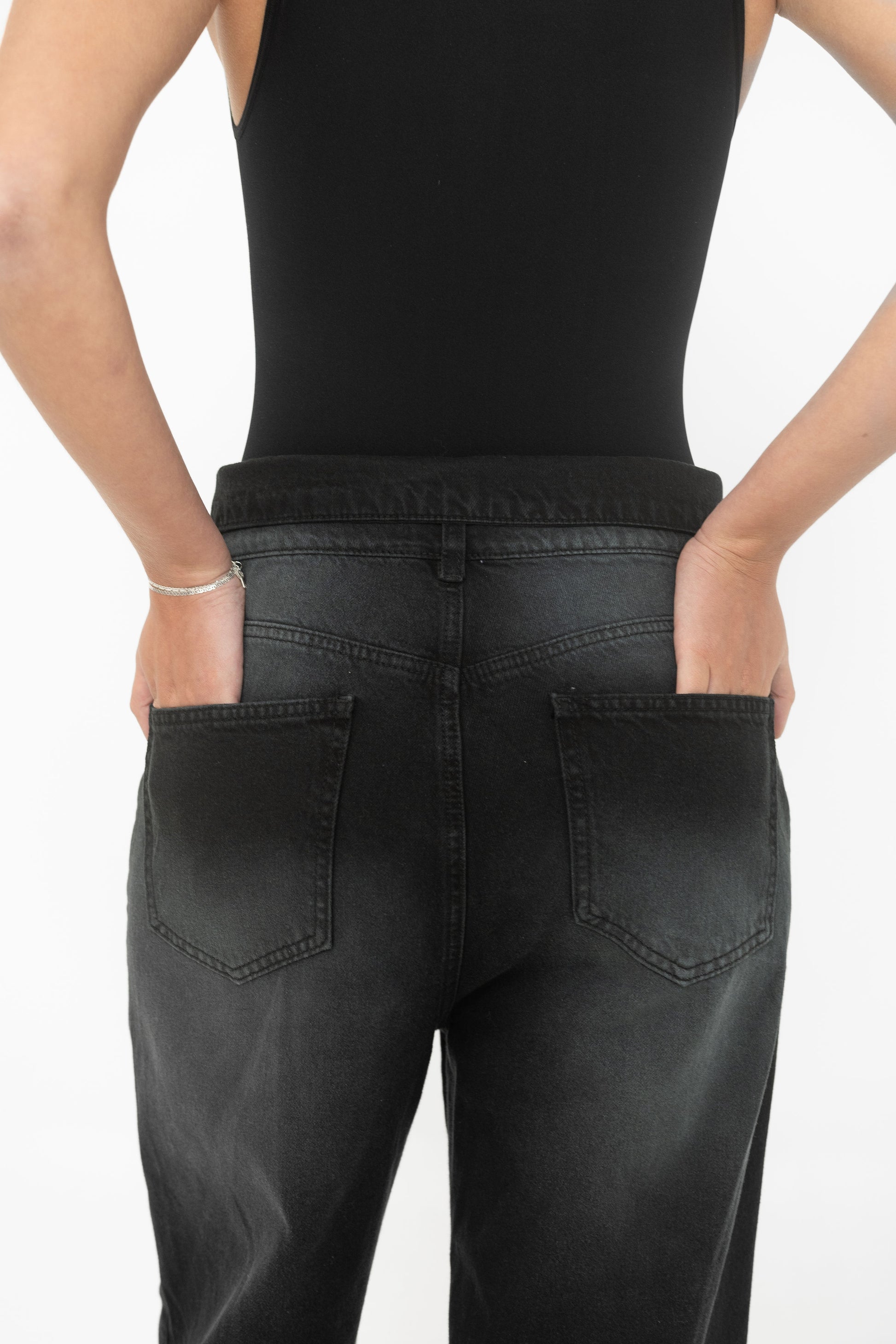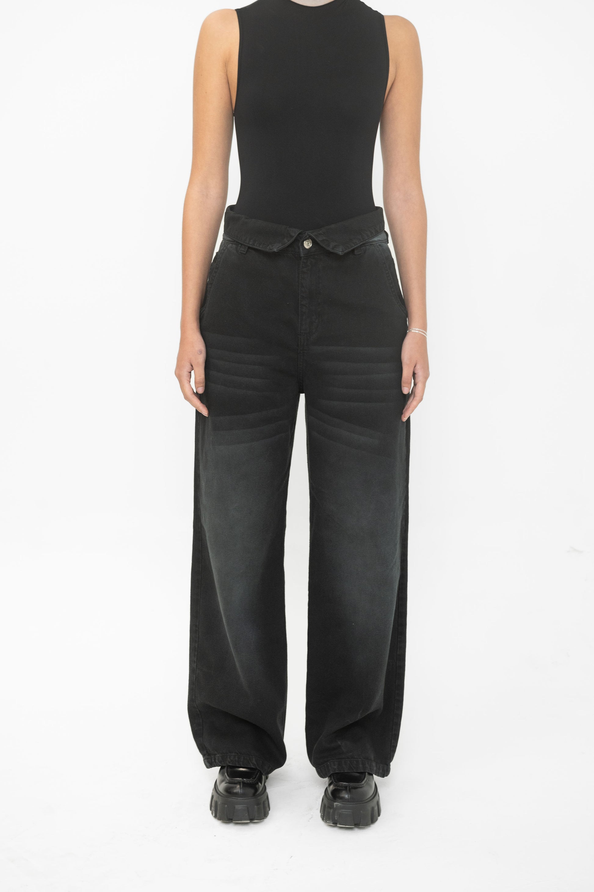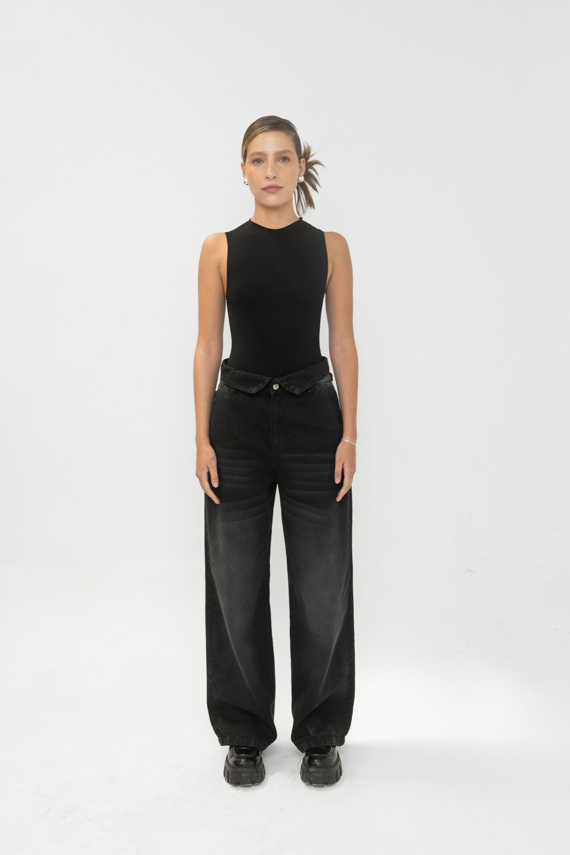 | Este modelo destaca por su detalle distintivo de pretina doblada que aporta un toque único al diseño. Es de color negro con destellos grises. De tiro medio, corte recto y fit baggy, pensado para ofrecer comodidad. Confeccionado en 100% algodón, es una prenda versátil e ideal para el uso diario. Llévalo con una prenda superior entallada para equilibrar las proporciones y acentuar su silueta relajada. La modelo usa Talla S. |